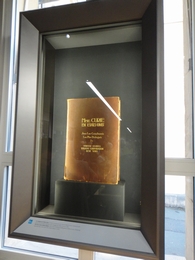 また、2012年9月13日に行われたキュリー博物館のリノベーションの式典にあわせ、博物館中央に大型スクリーンを贈呈しました。キュリー夫妻、娘イレーヌ夫妻の出迎える写真のもと、家族で5個のノーベル賞を受賞した業績をiPad方式で写真、資料を見ることができます。