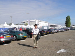 | ルマンのアストンのパーキングはアストンでいっぱい。 ヨーロッパ各国イギリスから、みんなアストンで参加。車は汚れています。 |