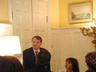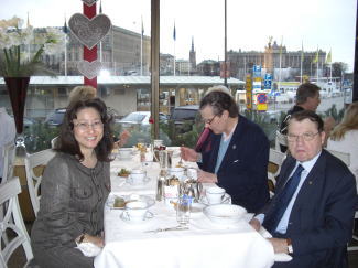 世界エイズ研究予防財団事務局長であったバグリアーニ氏と。カロリンスカ研究所レセプションにて。 |