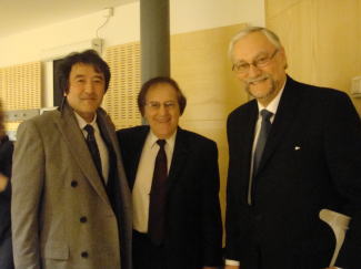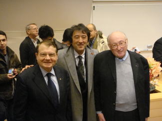 講演後のモンタニエ博士と博士のパスツール研究所時代からの友人と。 |